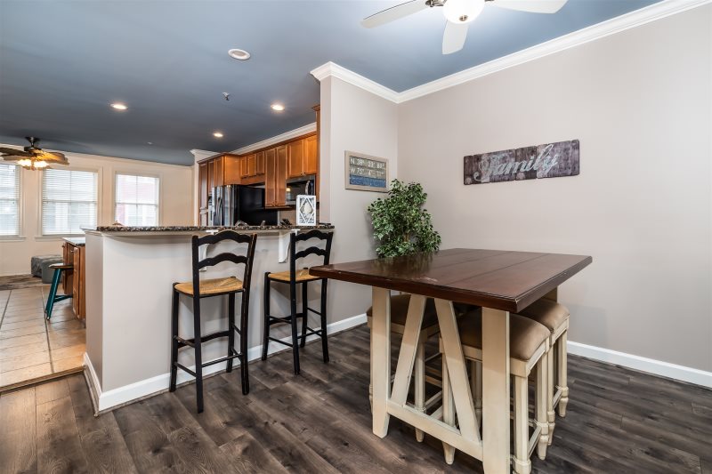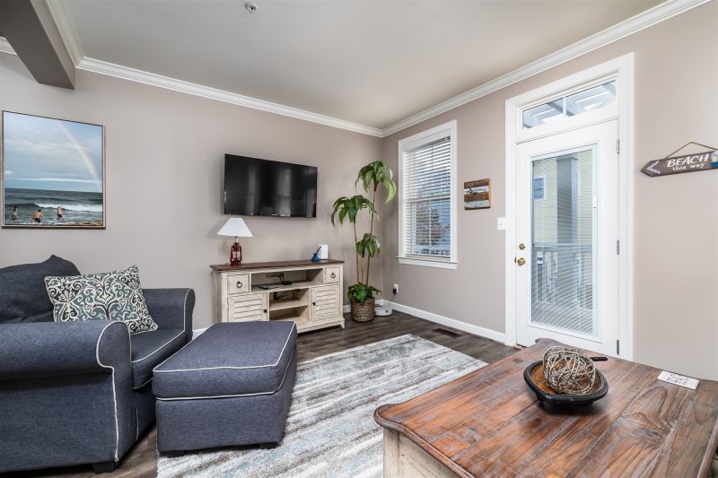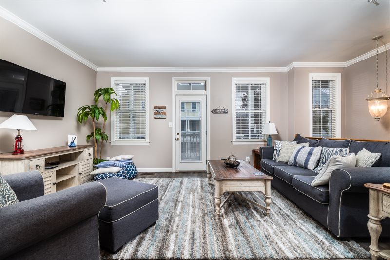 - Second (Main) Level – Large Living Room Area with a Flat Screen Tv, Kitchen with a Breakfast Bar, Dining Area, Private Balcony, Powder Room, Sitting Area.