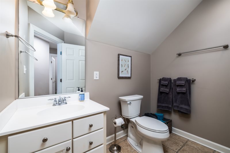 - First Level – Bedroom with a Queen Bed, Full Bathroom, Garage, Laundry Room.